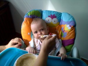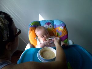 Altuğ artık yemeklerini mama sandalyesinde yiyor. Sebzeli tavuk çorbasını yedi, ilk kez sandalyesinde. Yemek sonunda uykusu geldiğinden hem yiyor, hem de sinirlenip, söyleniyordu..