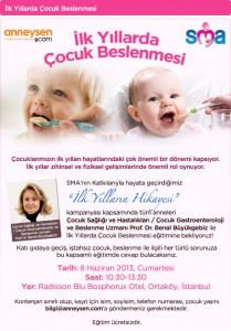 SMA’nın Katkılarıyla hayata geçen “İlk Yılların Hikayesi” kampanyası kapsamında tüm anneleri Çocuk Sağlığı ve Hastalıkları / Çocuk Gastroenteroloji ve Beslenme Uzmanı Prof Dr Benal Büyükgebiz ile İlk Yıllarda Çocuk Beslenmesi eğitimine anneysen.com ekibi bekliyor!